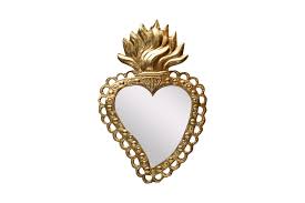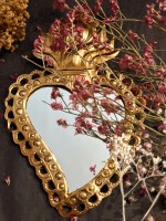 Miroir Cœur Ex Voto en fer blanc patiné doré.