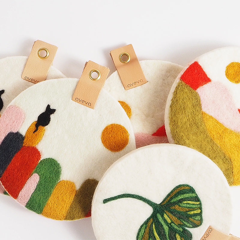 Pratiques et polyvalents, ils peuvent également servir de dessous de plat, grâce à la laine de haute qualité naturellement résistante à la chaleur et aux taches. Les teintures sont garanties sans AZO, pour une déco à la fois esthétique, saine et durable.